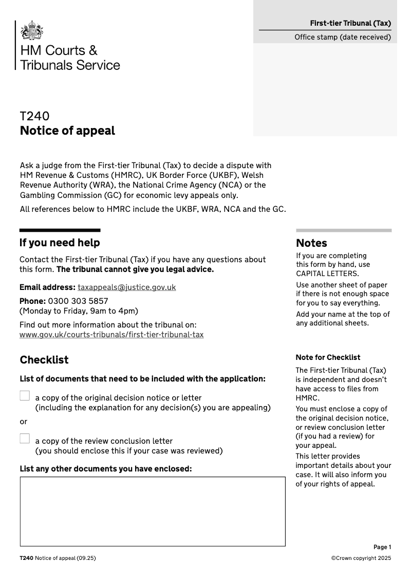 Notice of Appeal (First-tier Tribunal (Tax Chamber)) - electronic signature available
