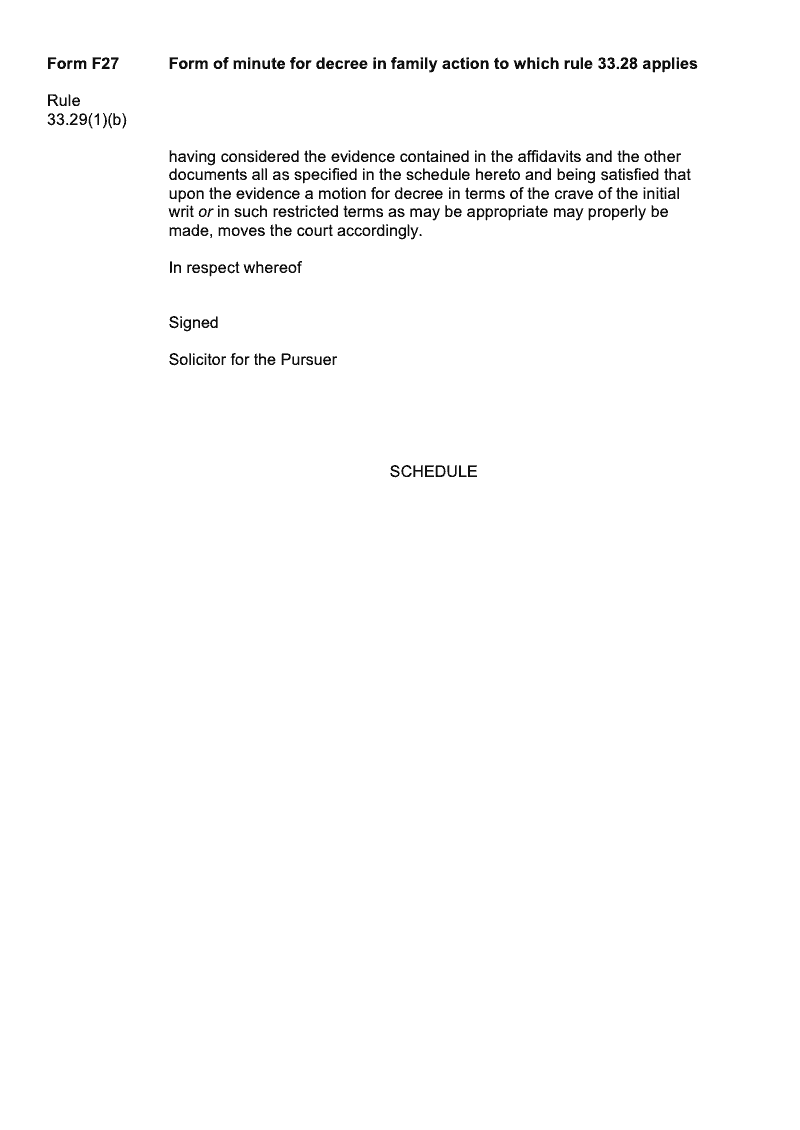Form of minute for decree in family action to which rule 33.28 applies