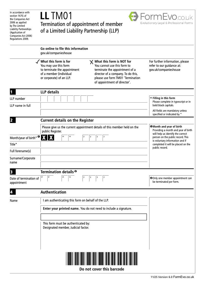 Termination of appointment of member of a Limited Liability Partnership (LLP)